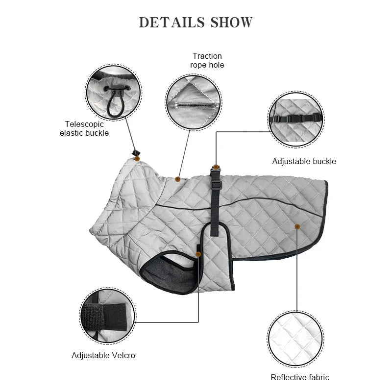 Reflective Winter Dog Jacket Large Medium Dog Coat Vest - GRAY / XXL